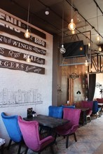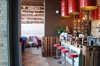Интерьер «Мой бар» выполнен в популярном лофтовом стиле - большие окна, натуральные материалы. Есть места на мягких диванчиках и креслах, а также высокие стулья за барной стойкой. Точечное освещение и столешницы с деталями от машинки «Зингер» подчеркивают творческий характер бара.